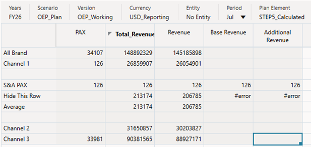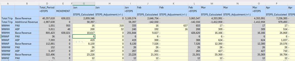 “Hide this row” is an interim calculation to populate a blank in the PAX column. This was done by copying the value from a blank formula row 3