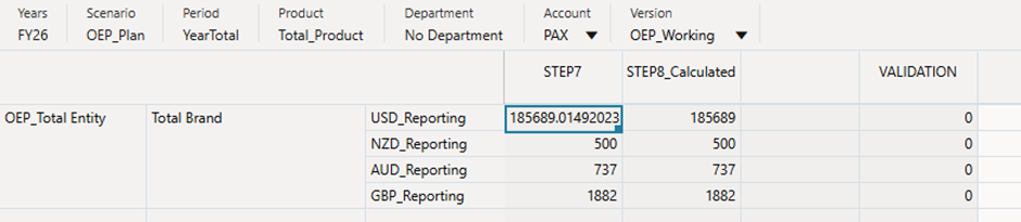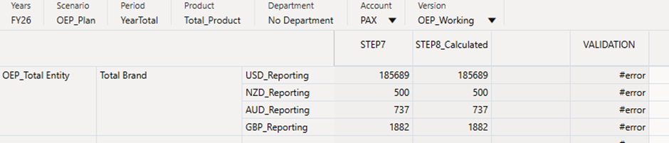 S&A PAX to get the same value in the whole row Formula: [A(a),2]