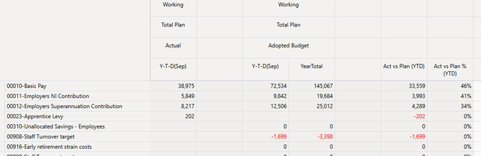 The variance column “Act vs Plan (YTD)” – Formula: Var([A],[C(a)])