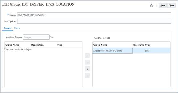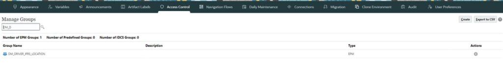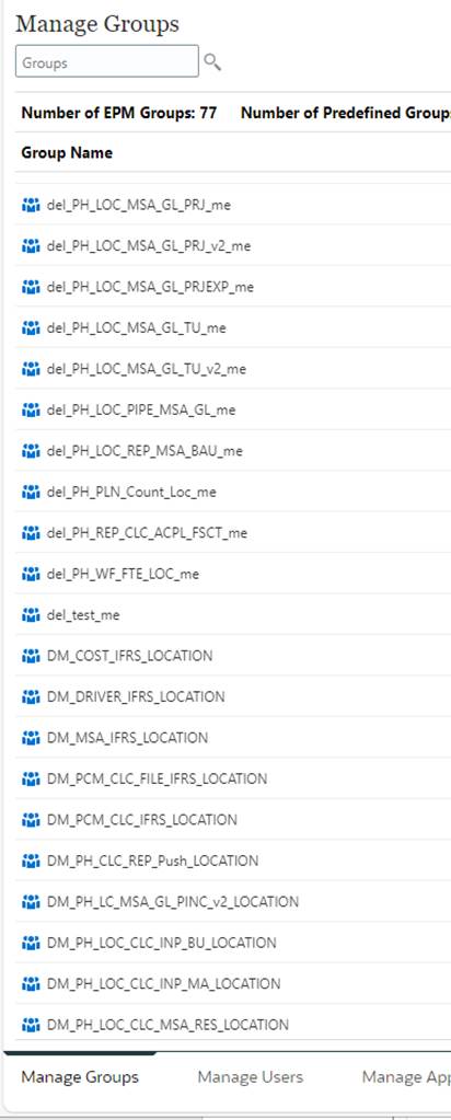 To create the Group in Planning/EPCM click the maintain User Group. The Groups will then appear in Navigator->Access Control->Manage Groups