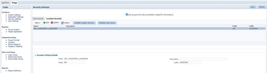 With a prefix & Suffix set, this will create a security group in Planning/EPCM for every location for each location security row. These will have to be deleted manually.